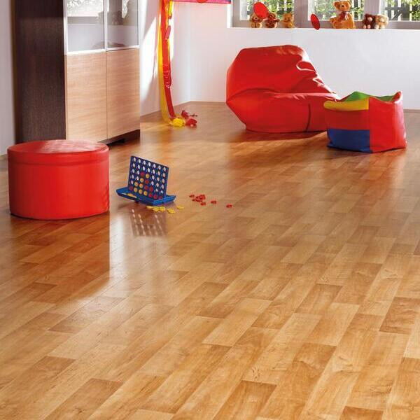Suelo vinílico de imitación al cerezo claro que brinda un surtido de lamas seleccionadas de forma desigual en los tonos y el dibujo para un resultado más realista.