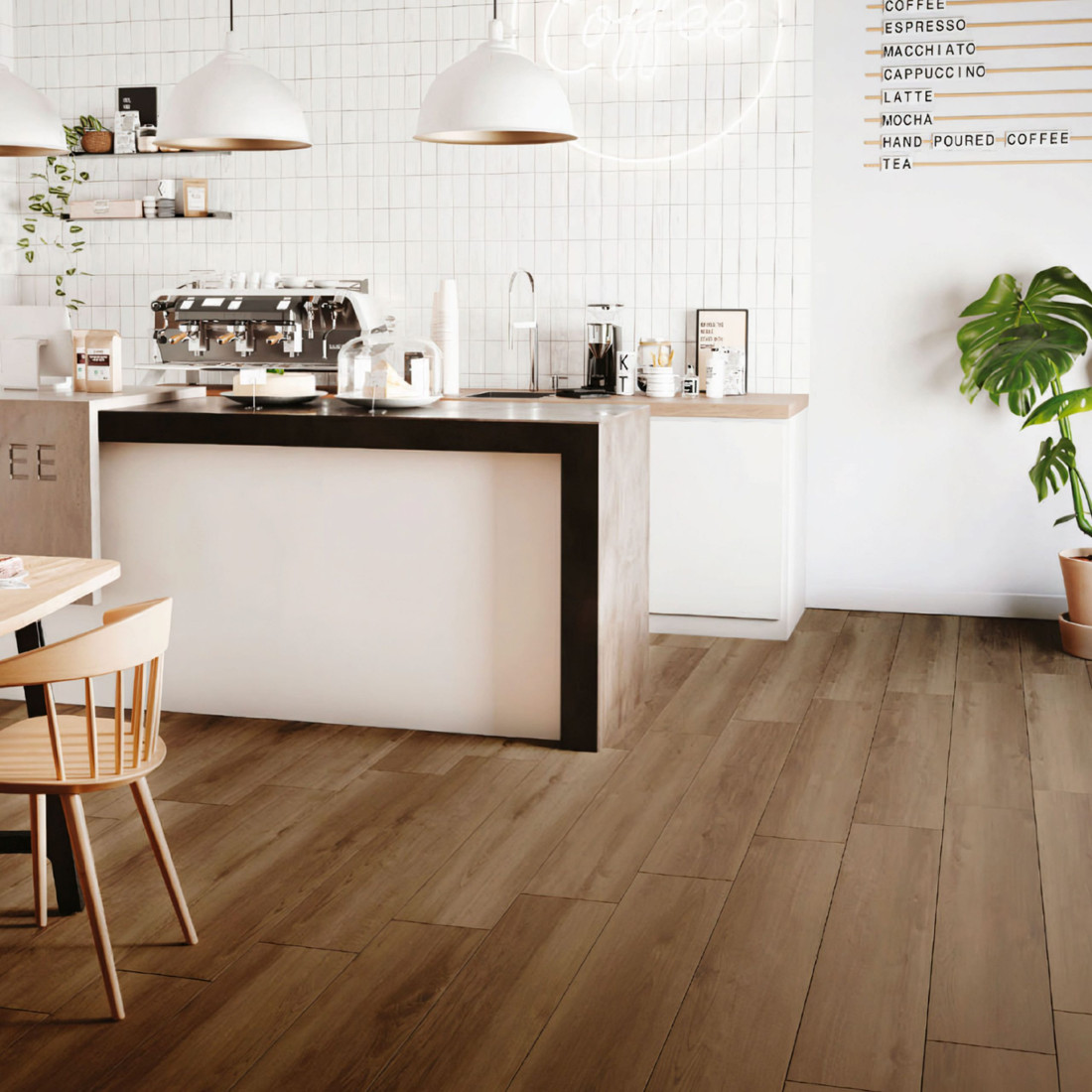 Roble Bamako de Greenflooring es un modelo audaz y lleno de personalidad que añade un toque de carácter a cualquier espacio. Con su color oscuro y su textura rica, este suelo crea una atmósfera acogedora y elegante. La capa de uso de 0,55 mm proporciona una resistencia excepcional a los arañazos y manchas, asegurando la belleza duradera del suelo.