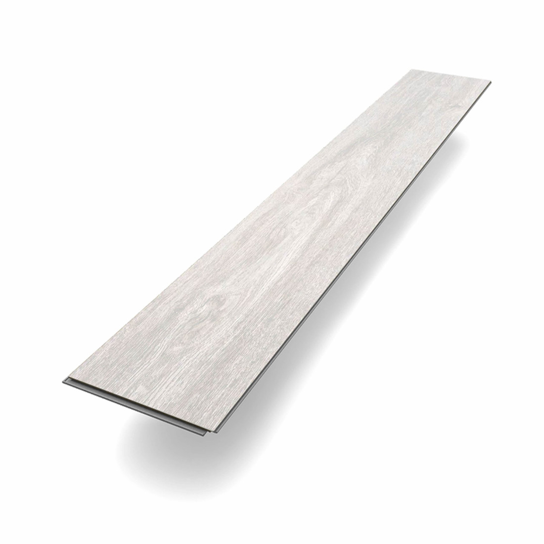 Roble Nevada de Greenflooring combina elegancia y modernidad en un solo suelo. Con su tonalidad blanca y su aspecto contemporáneo, este pavimento SPC aporta luminosidad y amplitud a cualquier espacio. La lámina digital impresa en alta definición reproduce fielmente los detalles de la madera natural, creando un efecto realista y acogedor.