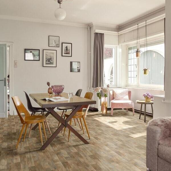 Suelo vinílico que combina un elegante tono beige con un efecto de textura aserrada, aportando realismo y autenticidad. Con propiedades antideslizantes para maximizar la seguridad, y antiestáticas que evitan la acumulación de polvo.